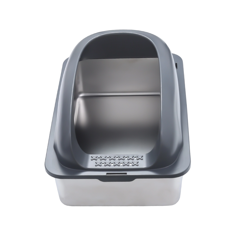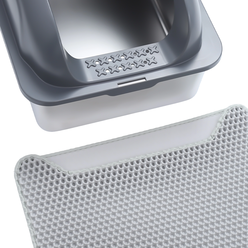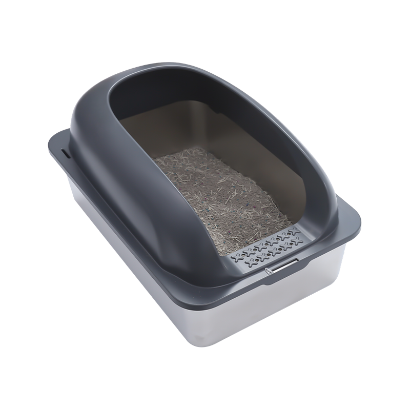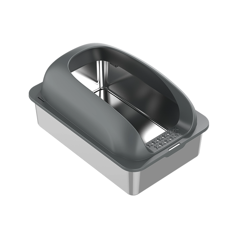 • Az alom kiömlésének megakadályozása érdekében az alomdoboz magas terelőlemezzel van felszerelve. Még akkor is, ha a macska mozog vagy karcolódik használat közben, az alom hatékonyan bent van a dobozban, megakadályozva annak kihordását, és tisztán tartja a környező környezetet. Ez különösen előnyös az aktív macskák számára, mivel a magas terelőlemezes kialakítás hatékonyan megakadályozza, hogy a kiömlött alom beszennyezze a padlót, csökkentve ezzel a tisztítási nehézségeket.